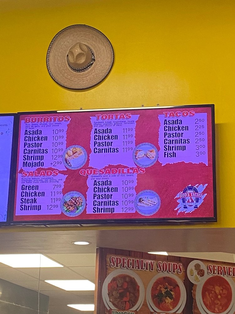 Rod’s Tacos, located in Granada Hills, CA, offers a wide variety of Mexican cuisine with options for vegans and vegetarians. The menu includes Rod's Specials like the 3 Enchiladas and 3 Flautas, as well as tasty Tacos such as Asada, Carnitas, and Fish. Their Tortas are also a must-try, with options like Asada, Carnitas, and Pastor. Customers have praised the large dining area, great salsa bar, and generous portions. Some have mentioned that the tacos were good but not outstanding, while others rave about the fresh and delicious food spread provided by Rodrigo for catering events. Overall, Rod’s Tacos offers affordable prices, good customer service, and a diverse menu that caters to different dietary preferences.